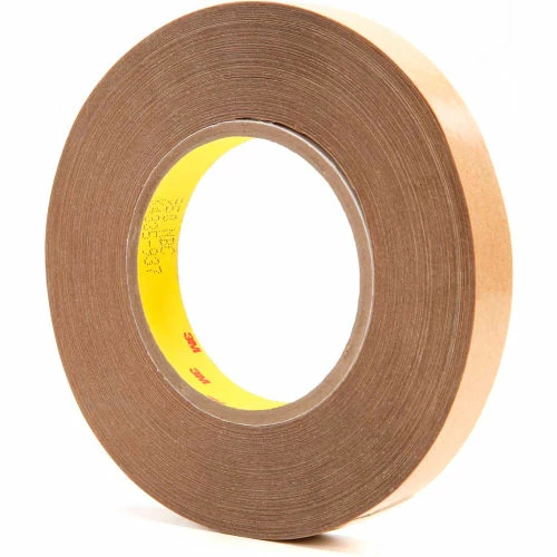 3M Adhesive Transfer Tape 950 is a 300 high strength acrylic adhesive on a 3.5 mil, 60 lb densified kraft paper liner. It is used as a general purpose transfer tape for a variety of high tack, thin applications. Ideal for a wide variety of similar and dissimilar materials where an aggressive adhesive with high initial adhesion is desired. Splicing of film, foils, fabrics. Laminating foams, photos, fabrics, metal or plastic nameplates. Bonds high and low surface energy plastics textured plastics, foams, fabrics, and coated papers. Ideal for attaching a wide variety of similar and dissimilar materials where an aggressive adhesive with high initial tack is required. UL approved. Meets US government specification MIL-P-19834B, Amendment 1.