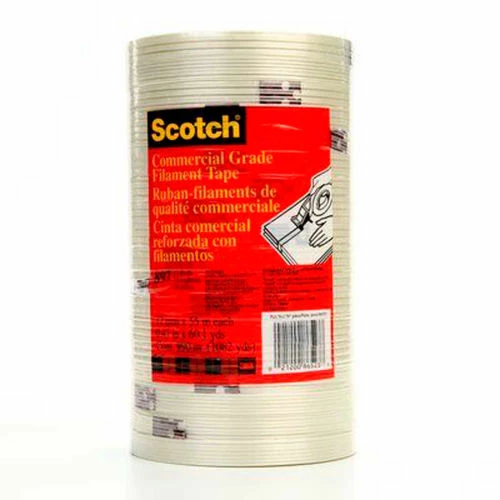 Designed with an adhesive that provides good initial adhesion and holds well with minimum rub-down, Scotch® Filament Tape 897 is a general purpose solution for a variety of bundling and reinforcing applications. The backing, filaments and adhesive combine to provide high tensile and shear strength compared to general purpose tapes. It allows for printing and illustrations to be seen through the tape. This tape holds under a wide range of application conditions with a minimum amount of tape, leading to lower cost for applications where high tensile strength is a main requirement. Recommended applications include carpet bundling, strapping, box reinforcing and closing and general packaging.