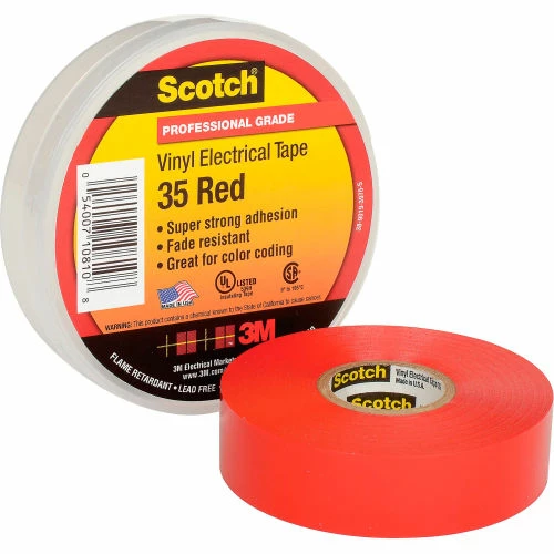 3m Scotch® Vinyl Electrical Color Coding Tape 35-Red, 3/4" X 66′ – Pkg Qty 10