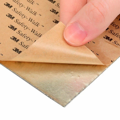 Ideal for use on diamond grade safety plates, steps and other irregular surfaces. Mineral coated, slip-resistant with aluminum foil backing. Conforms to irregular surfaces and around edges. High-friction, slip-resistant material has a special aluminum backing that conforms around corners and adheres to irregular surfaces. Applications: diamond grade safety plates, steps and ladder rungs. Heavy equipment and vehicles.