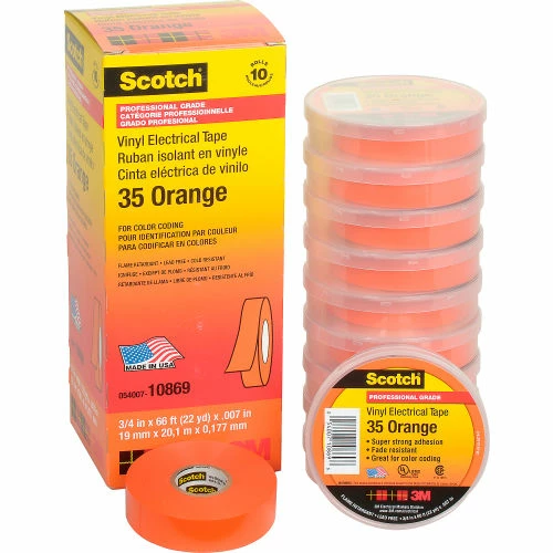 3M Scotch® Vinyl Electrical Color Coding Tape 35-Orange, 3/4" X 66′ – Pkg Qty 10