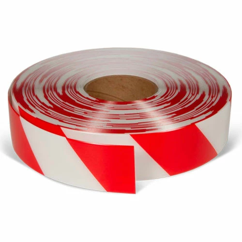 Global Industrial Striped Hazard Warning Tape, 4"W x 108’L, 5 Mil, Red/White, 1 Roll