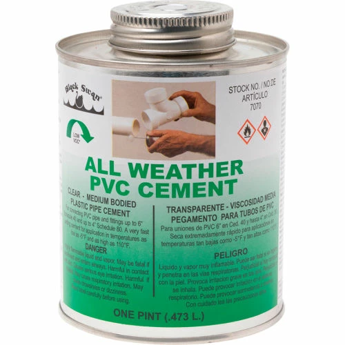 Black Swan All Weather PVC Cement (Clear) – Medium Bodied, 1 Pt – Pkg Qty 12