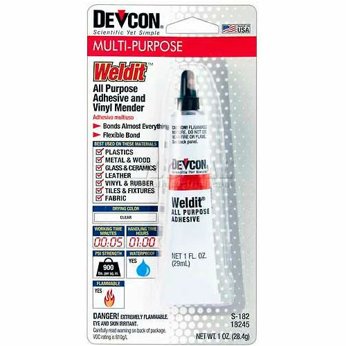 Weldit™ is a great all-purpose adhesive with hundreds of uses for repairs, projects, arts and crafts, pool toys and more. Stops leaks in containers, pipes and hoses. Waterproof seal also resists gasoline and oil. Stays flexible, never becomes brittle.