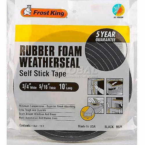 Frost King Sponge Rubber Foam Tape, 3/4" W X 5/16" D X 10′ L, Black – Pkg Qty 24