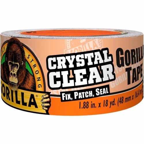 Crystal Clear Transparent Gorilla Tape features the strength of Gorilla Tape, in a crystal clear tape that does not yellow outdoors. Made with a heavy duty adhesive layer and waterproof backing for extreme durability. This tape is UV and temperature resistant – great for projects and repairs both indoors and out. Crystal Clear Transparent Gorilla Tape can be applied to wet surfaces and also works under water.