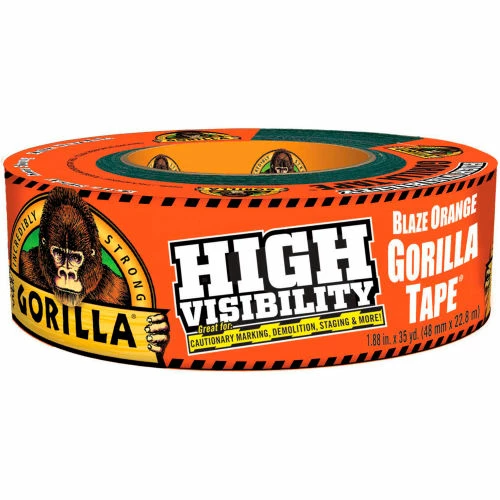 High Visibility Gorilla Tape® offers the strength of Gorilla Tape®, in a fluorescent orange color. Perfect for marking items that need attention, High Visibility Gorilla Tape® has a strong reinforced backing and a double thick adhesive allowing it to stick to rough and uneven surfaces. Its rugged, weather-resistant shell helps with moisture, UV rays and temperature changes making it great for projects both indoors and out!
