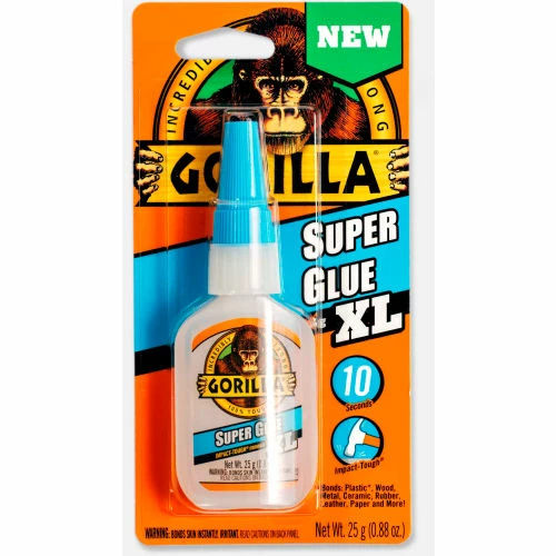 Its high strength and quick set time make Gorilla Super Glue the go-to adhesive for a variety of household projects. Developed for long-lasting repairs in an instant, the clear glue dries in 10-45 seconds. Our Super Glue is reinforced for increased impact resistance to handle bumps and drops. We call it Impact-Tough® because the reliable bond stands up to wear and tear.