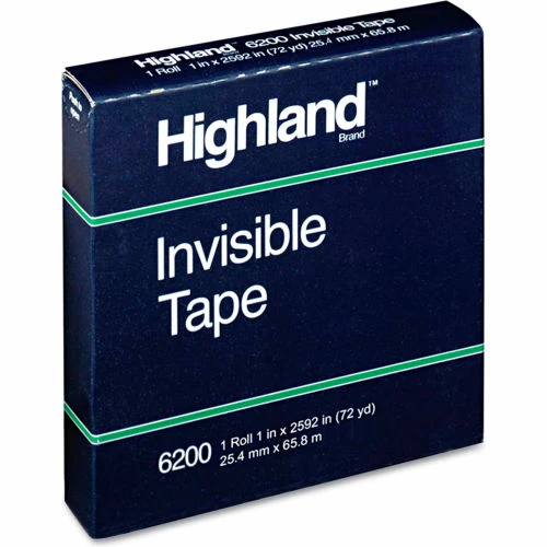 Matte finish tape becomes invisible on contact. Accepts ballpoint pen. Tape Type: Invisible; Size: 1″ x 2592″; Core Size: 3″.
