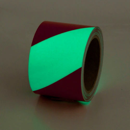 Protect workers during blackouts and evacuations. Glow-in-the-Dark Tapes will GLOW 6+ hours. Safety Glow Photoluminescent Tape comes with an aggressive permanent pressure sensitive adhesive that will adhere to most any clean, dry surface. Tape absorbs any ambient or UV light source, then releases this stored energy in darkness.