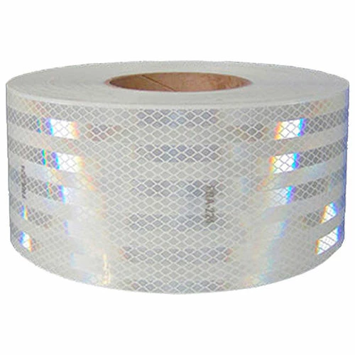 Place tape on trailers, construction vehicles and dock lifting trucks to prevent accidents and improve safety. Polyester based film with high tack pressure-sensitive adhesive backing. Meets DOT C-2 grade standard. 2″W X 150’L. White color.