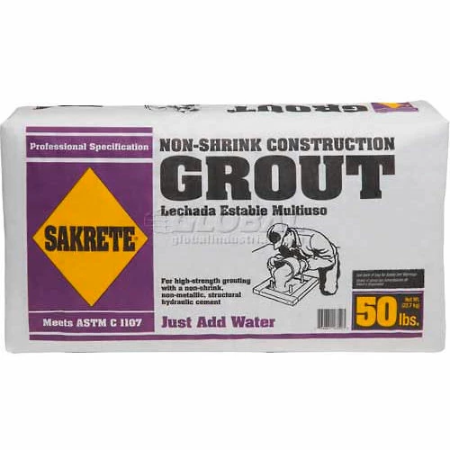 Sakrete® Non-Shrink Construction Grout is a non-shrink, non-metallic, structural hydraulic cement for high-strength grouting. 50 lb. bag. Coverage depends on thickness of application.