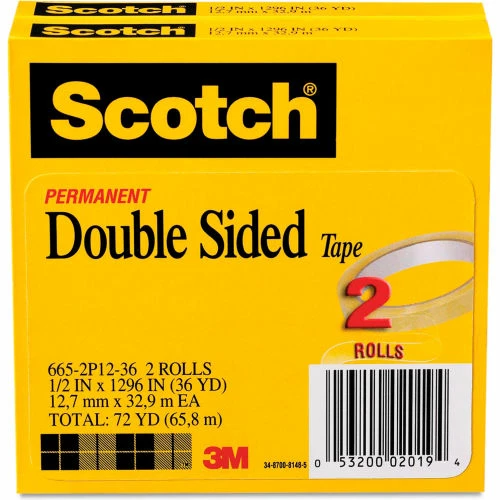 Choose Scotch® Double Sided Tape for the satisfaction of a job well done. It’s a neater alternative to messy glues that will keep your hands and workspace clean. The tape’s double-sided adhesive attaches your documents to poster boards or layouts without showing for a more polished presentation. It pulls easily off the roll and cuts cleanly to the length you need for any project. There is no liner to dispose of so you enjoy frustration-free taping. When you want to make a good impression, choose the smart, no-show solution. Tape Type: Double-Sided; Width: 1/2; Size: 1/2″ x 1296″; Core Size: 3″.”