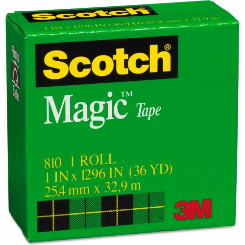 Trust your most important tasks to Scotch® Magic™ Tape, the preferred choice for offices and schools for over 50 years. Confidently read or scan critical documents when you use this matte finish tape that disappears on most office papers. You can rely on it to securely seal important envelopes or documents. Or write on it with pen, pencil or marker to label, correct and organize your papers. This dependable tape is designed for long term adhesion and clarity so it won’t dry out or yellow over time. For critical projects, choose the tape you can trust. Tape Type: Invisible; Width: 1; Size: 1″ x 1296″; Core Size: 1″.”