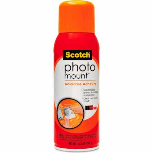 For mounting photographs, art prints, maps and drawings. Spray makes it easy to cover large areas fast. Clear, professional-grade, photo-safe adhesive is pH neutral. Dries clear. Adhesive Type: Aerosol; Color Dried: Clear; Color on Application: Clear; Capacity (Volume): 10.25 oz.