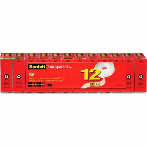 Offices and homes need supplies that can handle a wide range of jobs–making this tape an ideal addition. The excellent holding power and instant adhesion means you can use this tape for a wide range of applications. The long aging, stain- and moisture-resistant makeup is ideal for label protection and multi-purpose sealing. The tape offers you a glossy, high-clarity finish that looks great. Plus, it’s photo safe. The tape is designed for use in desktop dispensers, allowing for a quick and easy application. Roll with value Tape Type: Transparent; Size: 3/4 x 1000″; Core Size: 1″; Color(s): Clear.”