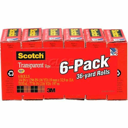 Scotch® Transparent Tape is the classic, glossy finish tape. A great value for general purpose wrapping, sealing and mending. Clear when applied and does not yellow.