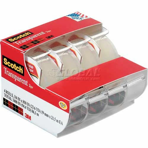 Premium transparent tape with a glossy finish for general purpose use. Pulls off the roll smoothly and cuts easily. Resists splitting and tearing. Easy to handle and apply. Resists yellowing and drying out. Package includes 4 rolls – each 3/4″ x 850″ with dispenser.