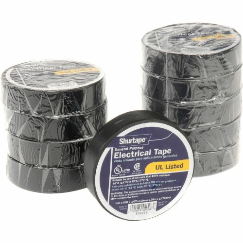 Shurtape EV 057B Black Electrical Tape, EV 57 3/4" X 66′, 7 mil, Black – Pkg Qty 10